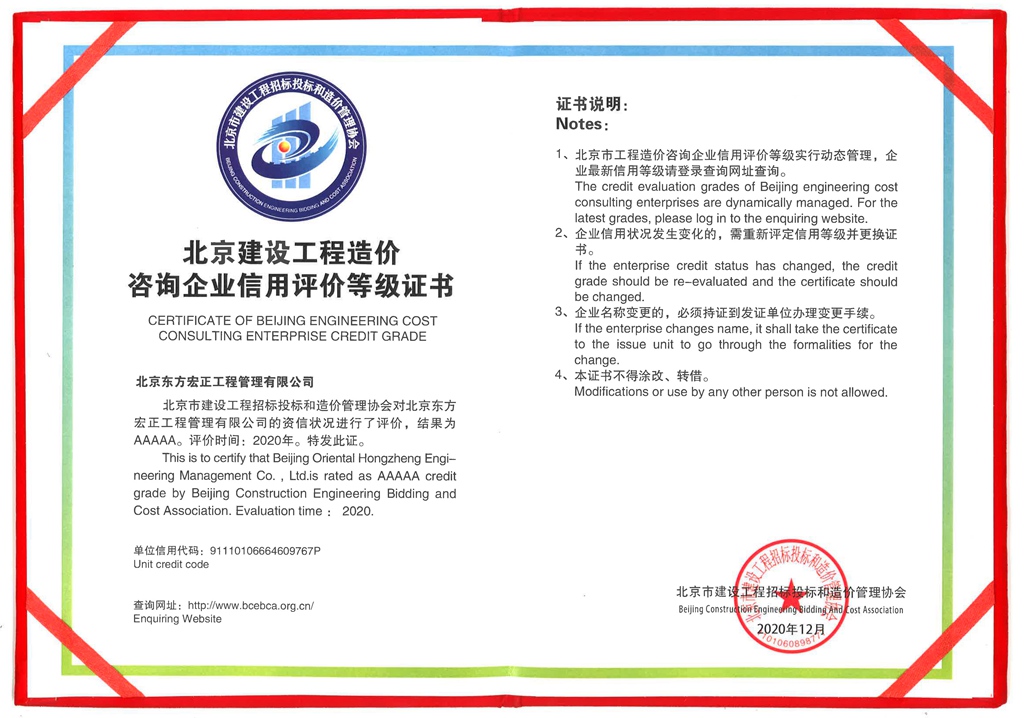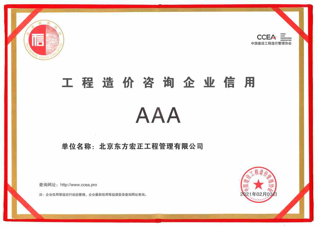 北京東方宏正工程管理有限公司是經(jīng)住房和城鄉(xiāng)建設(shè)部審批的甲級(jí)造價(jià)咨詢(xún)公司,并取得北京市高新技術(shù)企業(yè)證書(shū)、軍工涉密業(yè)務(wù)咨詢(xún)服務(wù)安全保密條件備案證書(shū),中價(jià)協(xié)工程造價(jià)咨詢(xún)企業(yè)信用AAA、京標(biāo)價(jià)協(xié)造價(jià)咨詢(xún)企業(yè)信用評(píng)價(jià)等級(jí)AAAAA和招標(biāo)代理企業(yè)資信評(píng)價(jià)等級(jí)AAAAA,豐臺(tái)區(qū)先進(jìn)基層黨組織、京標(biāo)價(jià)協(xié)先進(jìn)基層黨組織、京標(biāo)價(jià)協(xié)先進(jìn)會(huì)員單位。我公司業(yè)務(wù)遍及全國(guó)各地,現(xiàn)有江蘇分公司、連云港分公司、吉林分公司、武漢分公司等分支機(jī)構(gòu)。...